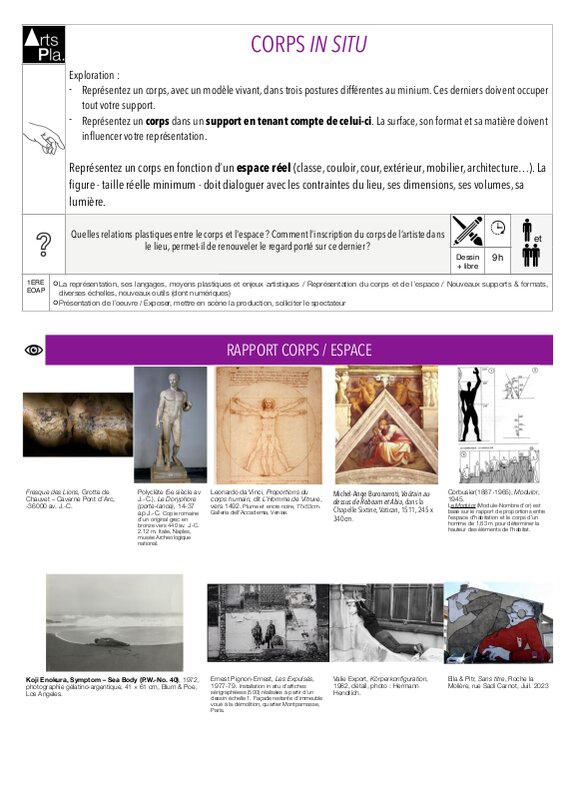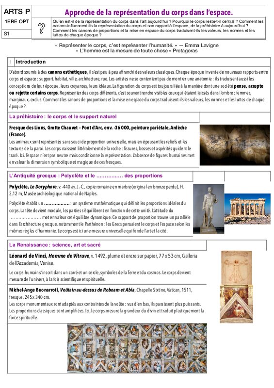 Cours 1Ere Arts Plastiques Approche De La RepréSentation Du Corps Dans L’Espace À CompléTer