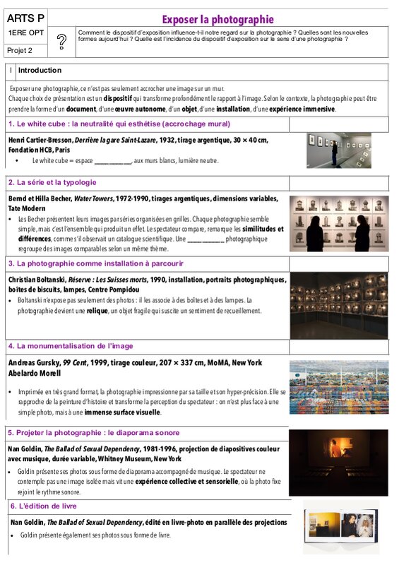 Cours 1Ere Arts Plastiques Exposer La Photographie
