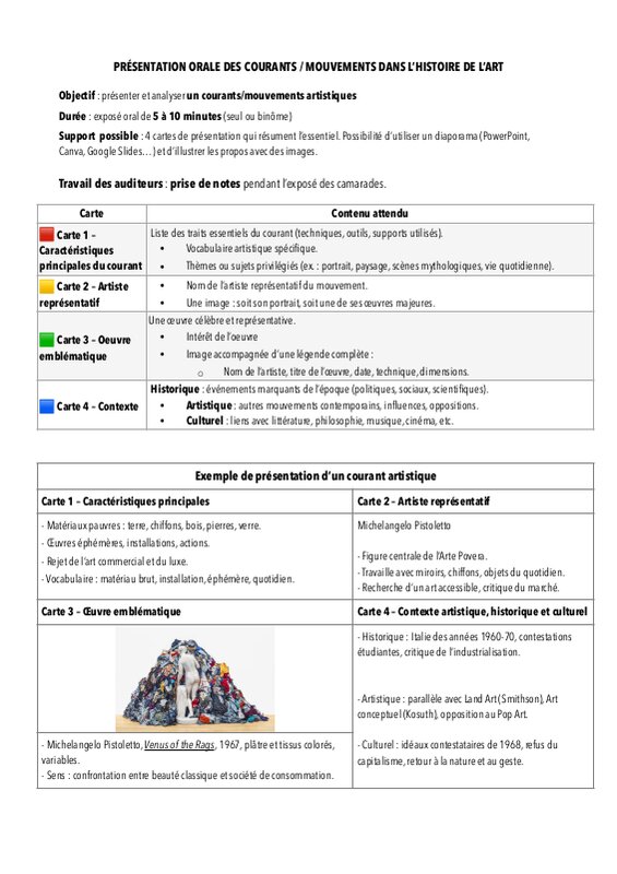 1Ere Option PréSentation Des Temps Forts De L’Histoire De L’Art