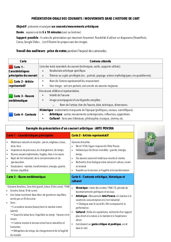 2De Ap Oral PréSentation Des Temps Forts De L’Histoire De L’Art 2De Option