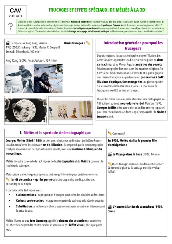 Cours Cav 2De Trucages Et Effets SpéCiaux, De MéLièS À La 3D