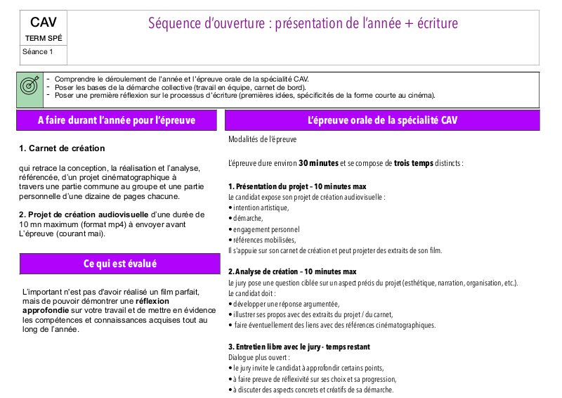 SéQuence D’Ouverture Cours Term Cav: PréSentation De L’AnnéE + ÉCriture